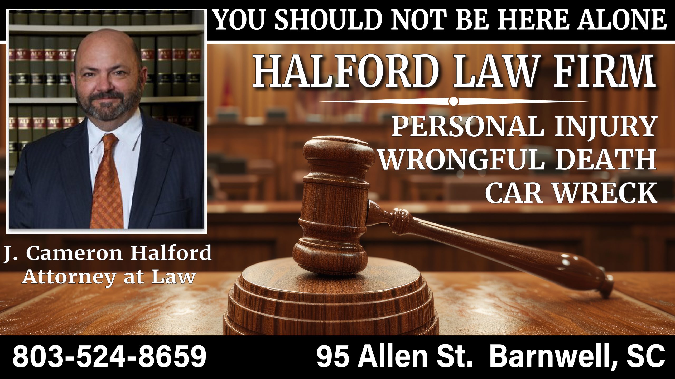 With a strong foundation in legal expertise and a commitment to serving his community, J. Cameron Halford offers trusted legal counsel and representation across a range of practice areas. Based in Barnwell, South Carolina, Attorney Halford provides personalized attention to each client, guiding them through complex legal matters with clarity, integrity, and care.