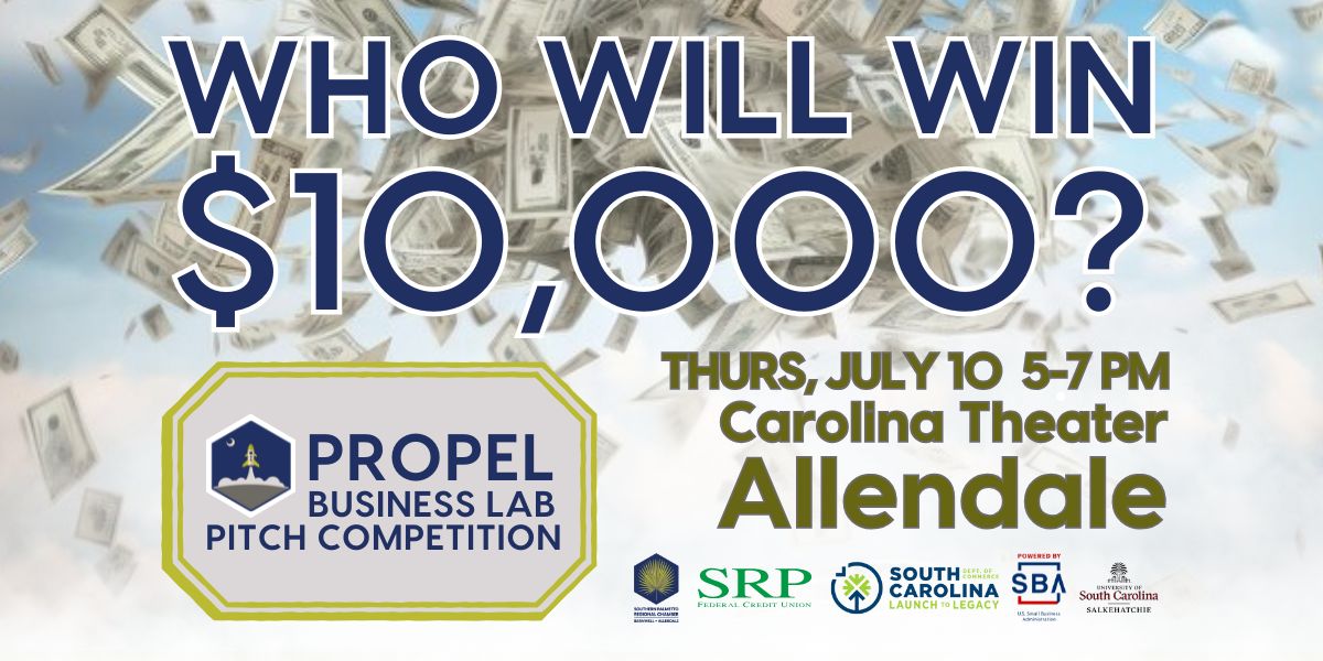 Carolina Theater 425 Main St N, Allendale, South Carolina, United StatesJoin us for an exciting evening as local entrepreneurs from Allendale compete for a $10,000 business grant! Hosted at the historic Carolina Theater in Allendale, this event is the grand finale of Propel Business Lab—a 12-week business accelerator program developed by the Southern Palmetto Regional Chamber, Palmetto Innovation Center, and Leadership Salkehatchie. Enjoy great food, […]