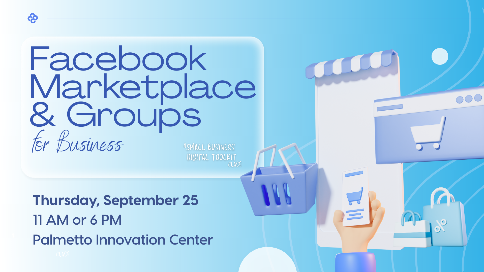 Palmetto Innovation Center 218 Main Street, Barnwell, SC, United StatesLooking to get more customers without spending big on advertising? This workshop will show you how to use Facebook Marketplace and local Facebook Groups to grow your small business. You’ll learn how to create listings that sell, take better product photos, and connect with local buyers in a safe and professional way. We’ll also cover […]